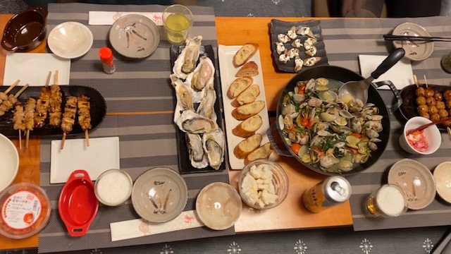 蒸し牡蛎(フジ作)&ガーリックトースト(ヨザ作)