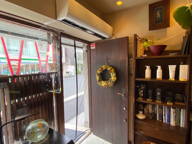 入口はメッシュカーテンとエアーカーテンでお出迎え