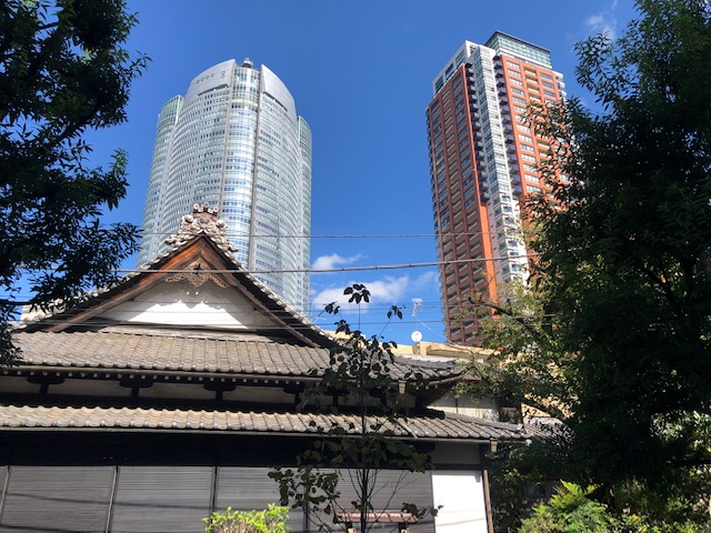 お向かいの専称寺の桜とヒルズ