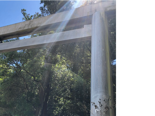 木々の間から後光が差し込んでいました 眩しく暑い外宮でした